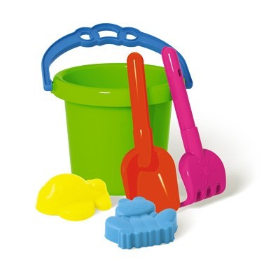 В этот набор входит все, чтобы создавать самые разные конструкции из песка: вместительное ведерко с удобной ручкой, две формочки, соразмерные детской ладошке, а также грабельки и совочек со скругленными ручками. Все элементы набора выполнены из качественных нетоксичных материалов, безопасных для здоровья ребенка.