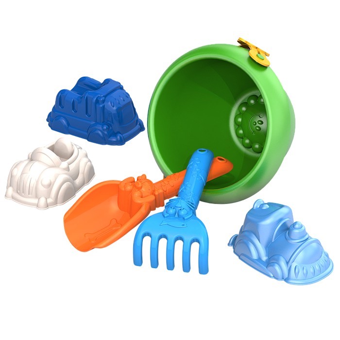 Комплектация: 3 формочки "Машинки" (арт. 431700), грабли (арт. 199), совок (арт. 198), ведро (арт. 431788)