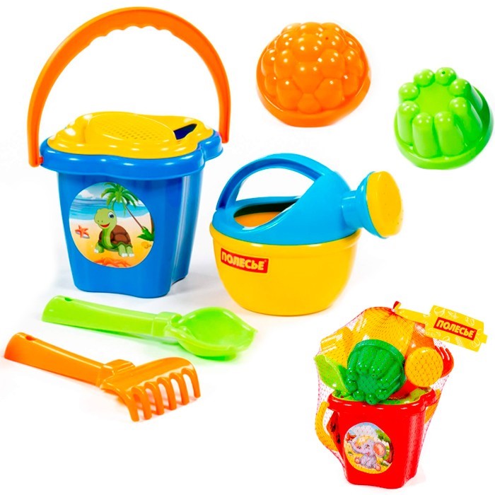 Комплектация: ведро, совок, грабли, формочка - 2 шт., сито, лейка