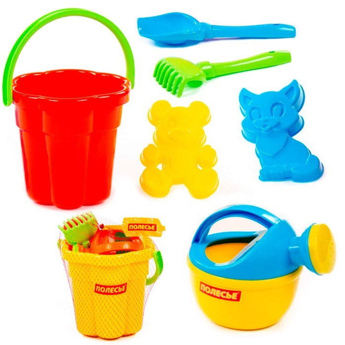 Комплектация: ведро, совок, 2 формочки, лейка