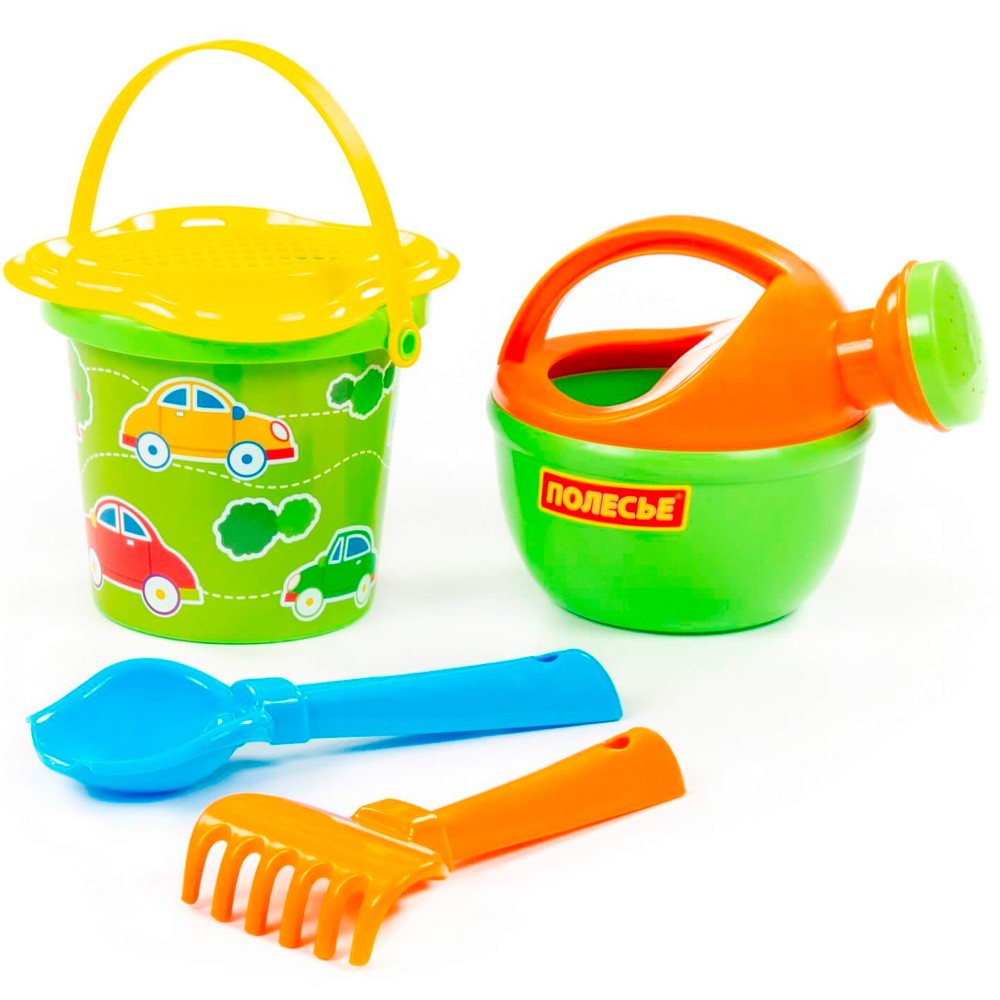 Комплектация: ведро, совок, грабли, лейка, сито