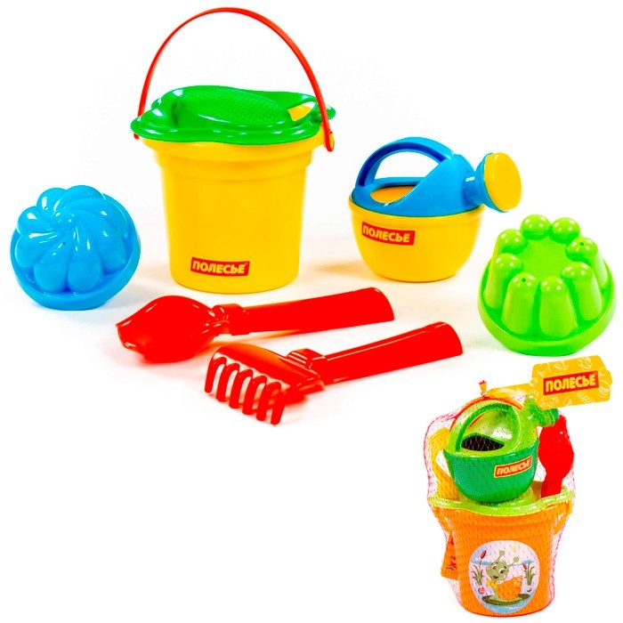 Комплектация: ведро, совок, грабли, формочка - 2 шт., сито, лейка