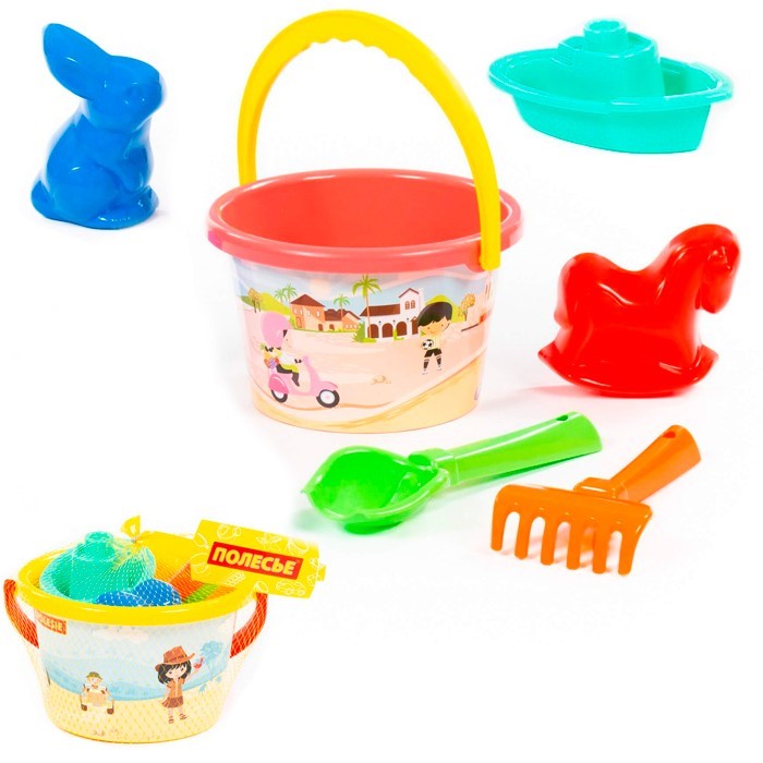 Комплектация: ведро, совок, грабли, катер, формочка - 2 шт.