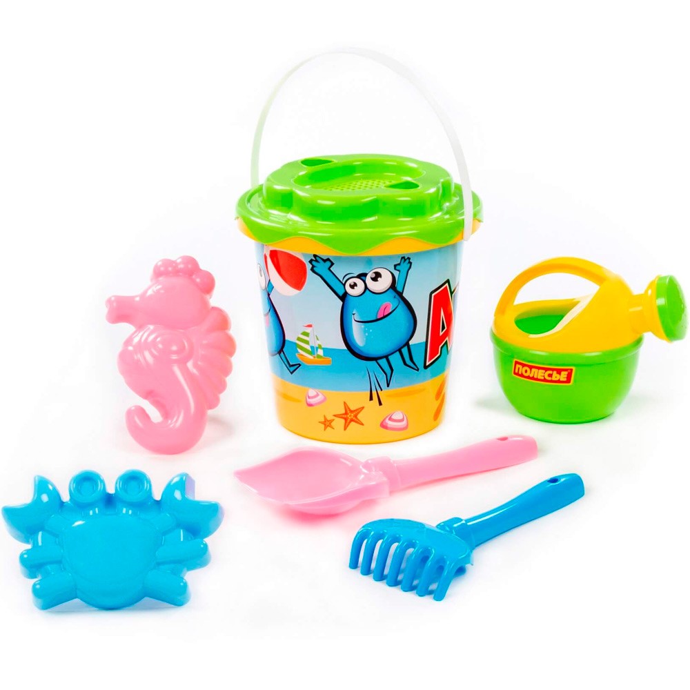 Комплектация: ведро, совок, грабли, сито, лейка, 2 формочки