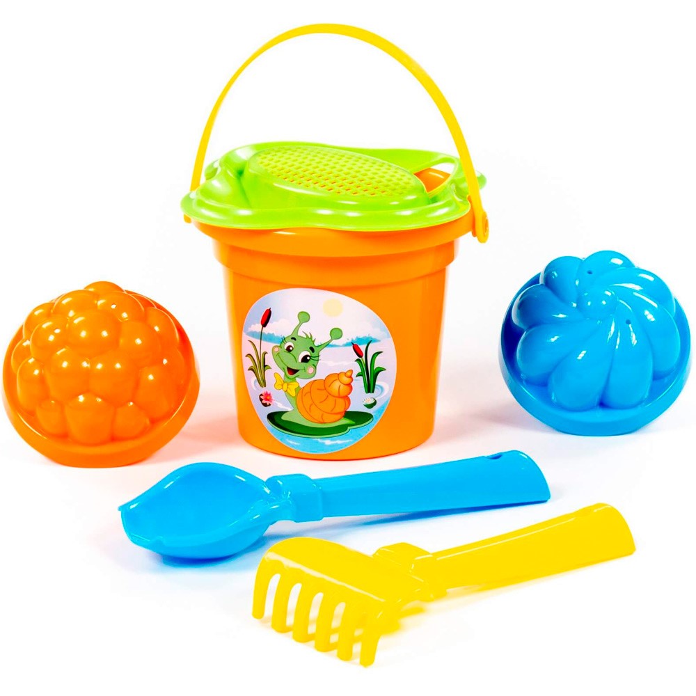 Комплектация: ведро, совок, грабли, формочка - 2 шт., сито