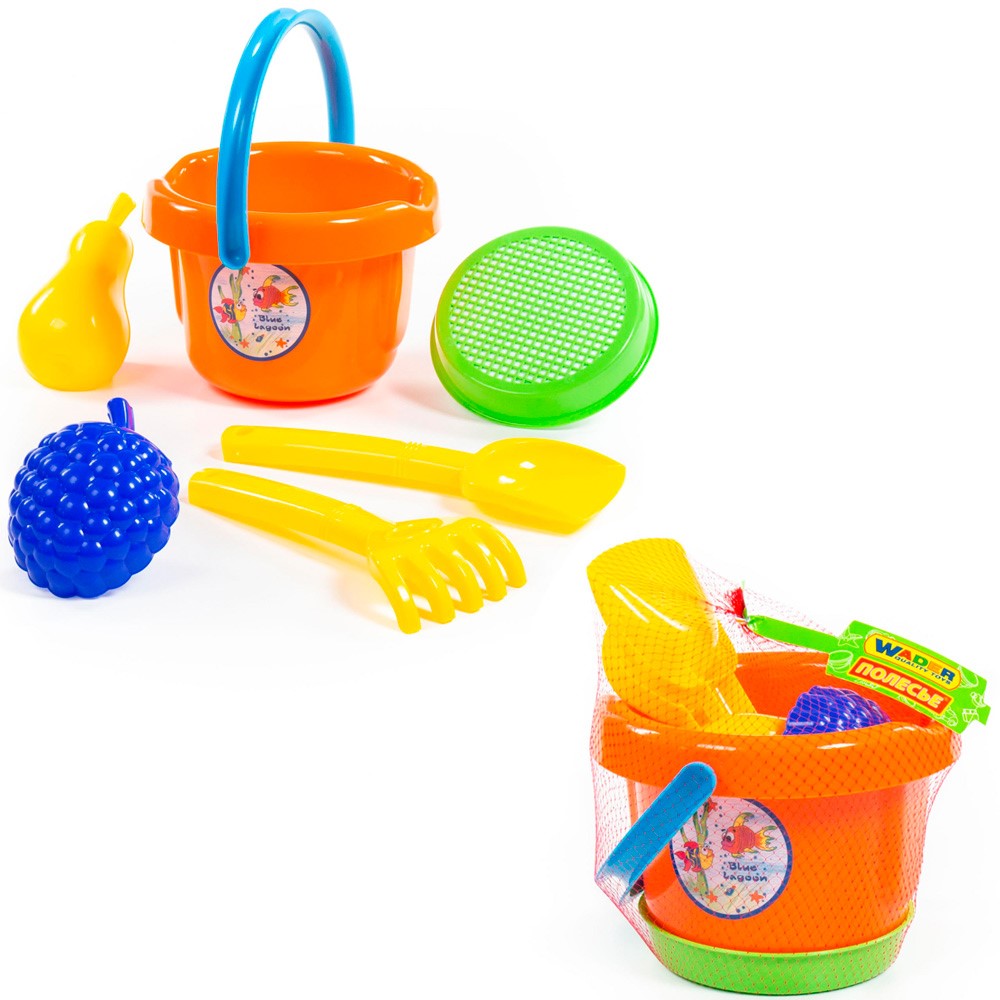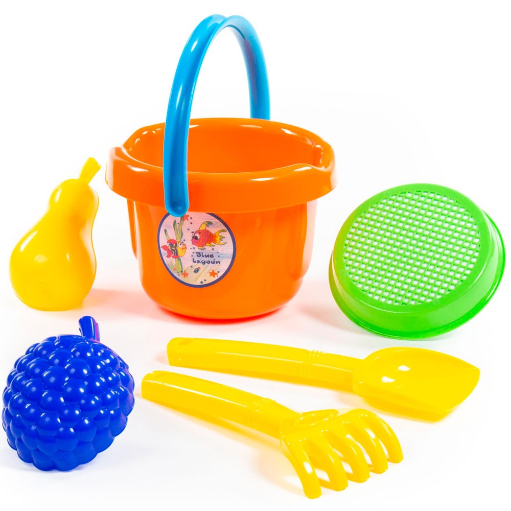 Комплектация: ведро, совок, сито, грабли, формочка - 2 шт.