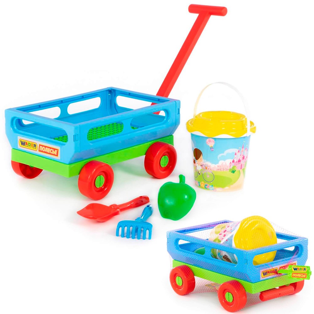 Комплектация: тачка, ведро, сито, совок, грабли, формочка