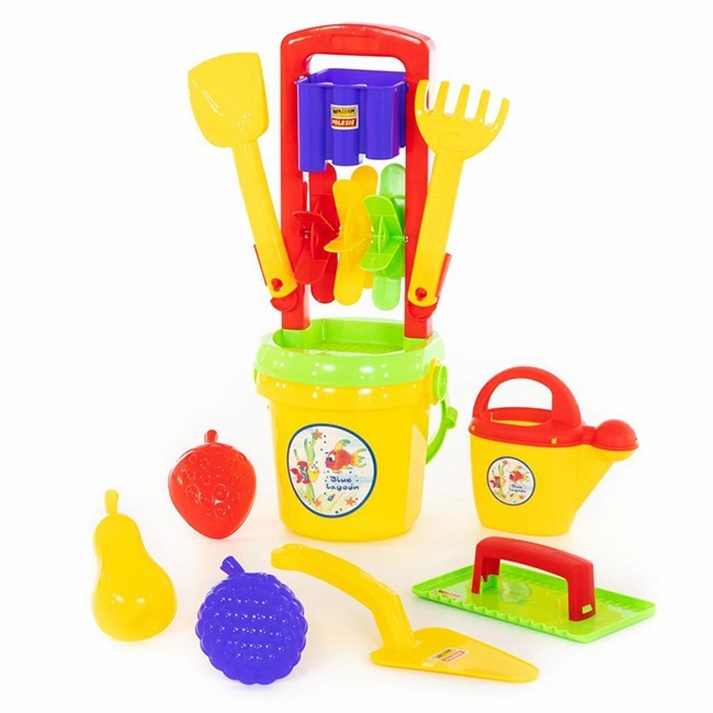 Комплектация: мельница, ведро, совок, грабли, мастерок, шлифователь, лейка, 3 формочки, сито