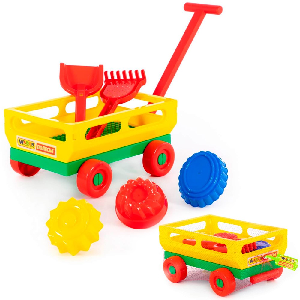 Комплектация: тачка, совок, грабли, 3 формочки