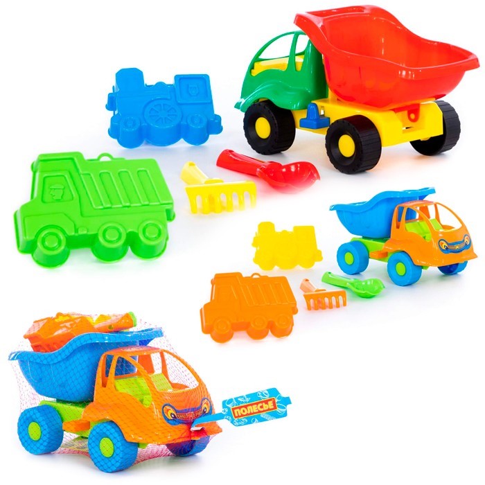 Комплектация: самосвал "Муравей" + формочки (самосвал, паровоз), совок №2, грабельки №2