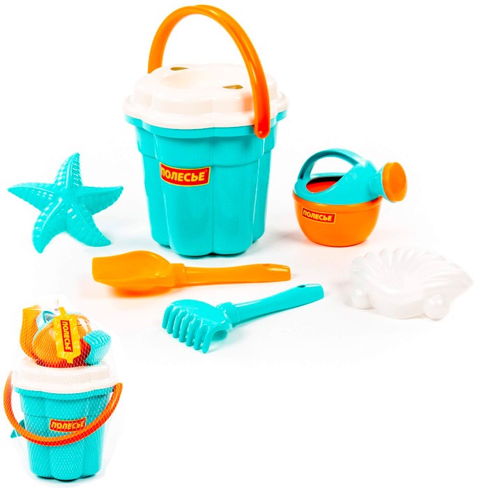 Комплектация: ведро -1 шт., формочка - 2 шт., сито - шт., совок - 1 шт., грабли - 1 шт., лейка - 1 шт.