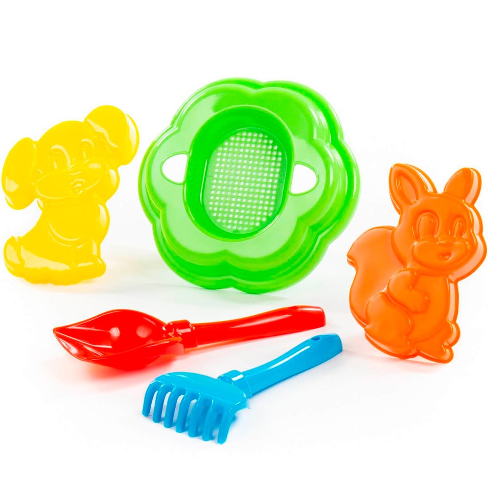Комплектация: совок, сито, грабли, формочка - 2 шт.