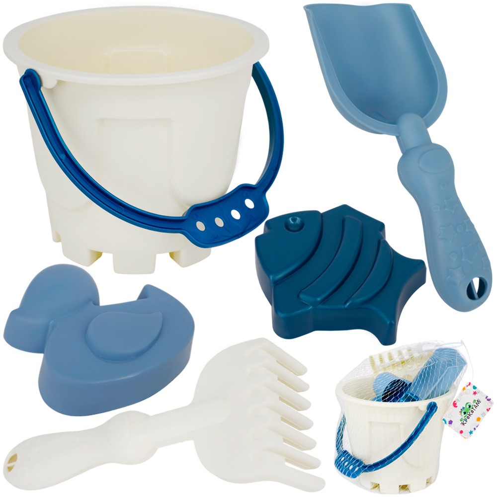 Комплектация: ведро - 1 шт, лопатка - 1 шт, грабли - 1 шт,фигурки: рыбка, утка