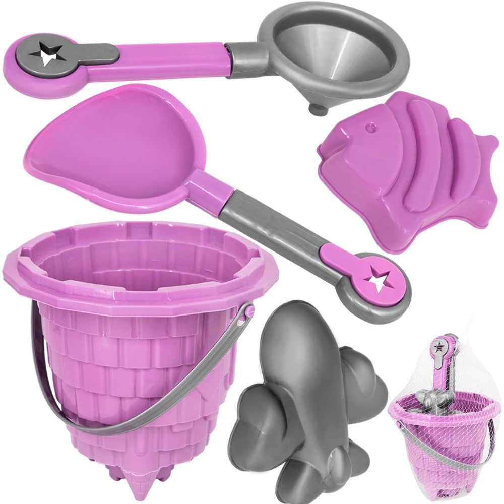 Комплектация: ведро - 1 шт, лопатка - 1 шт, воронка - 1 шт, фигурки: самолет -1 шт, рыбка- 1 шт