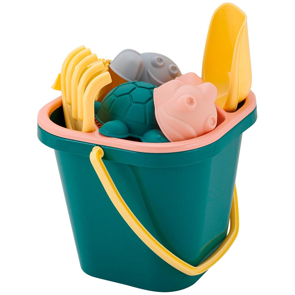 Комплектация: ведро - 1 шт., совок - 1 шт., грабли - 1 шт., сито - 1 шт., формочка - 4 шт.