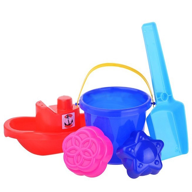 Комплектация: ведерко, лопатки, 2 формочки, кораблик