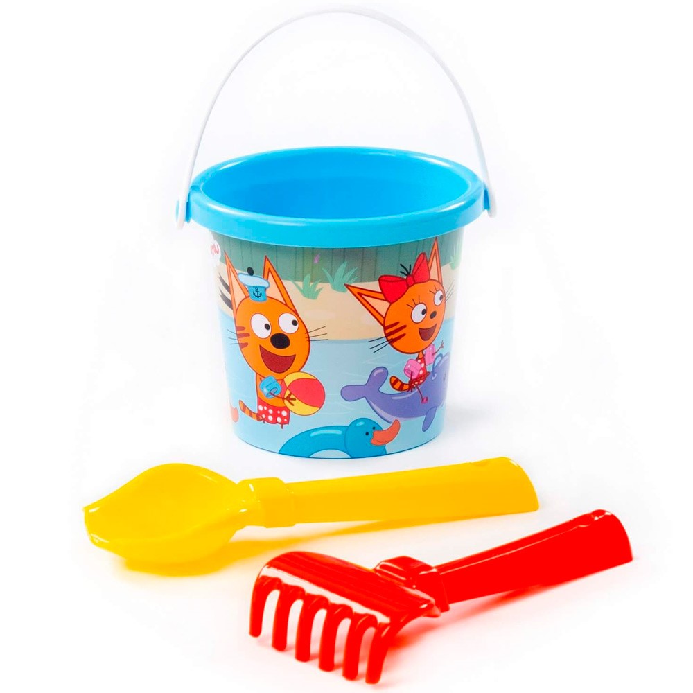 Песочный набор "Три кота" №7: Ведро малое с наклейкой, совок №2, грабельки №2 73645 П-Е /18/