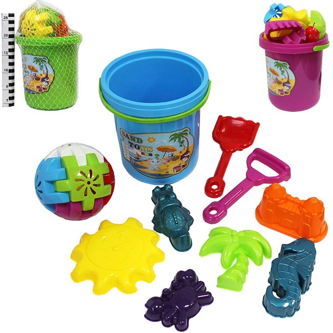 Комплектация: ведро 3л, грабли, совок, 6 формочек, игрушка