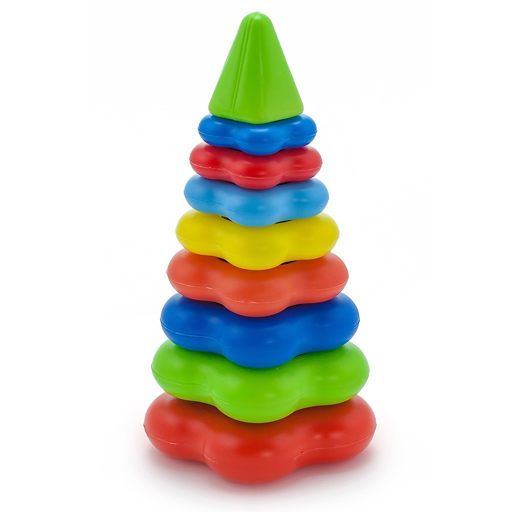 Яркая пирамидка поможет малышу развить моторику и координацию рук, зрительное восприятие, умение различать цвета, логическое и образное мышление и тактильные ощущения.