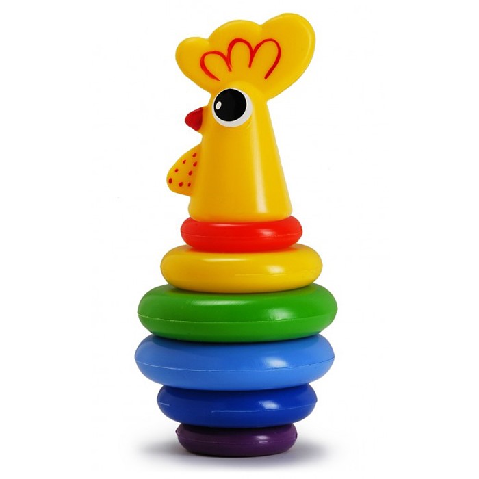 Яркая пирамидка поможет малышу развить моторику и координацию рук, зрительное восприятие, умение различать цвета, логическое и образное мышление и тактильные ощущения.
