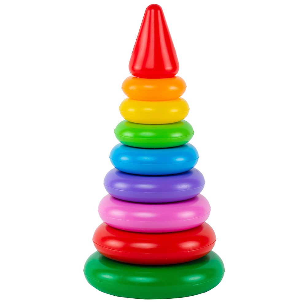 Эта пирамидка сделана из пластика ярких цветов.