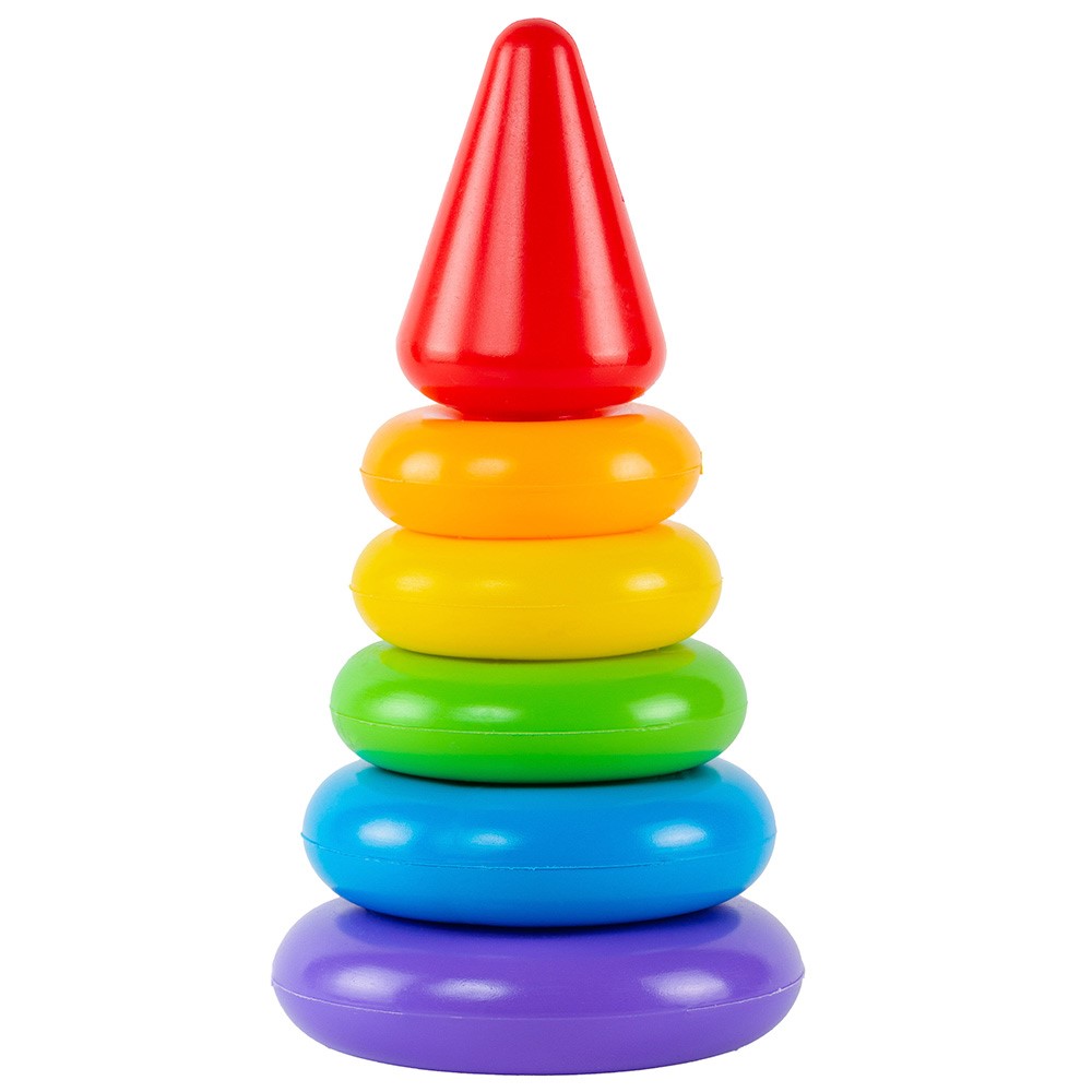 • Яркая пирамидка поможет малышу развить моторику и координацию рук, зрительное восприятие, умение различать цвета, логическое и образное мышление и тактильные ощущения.