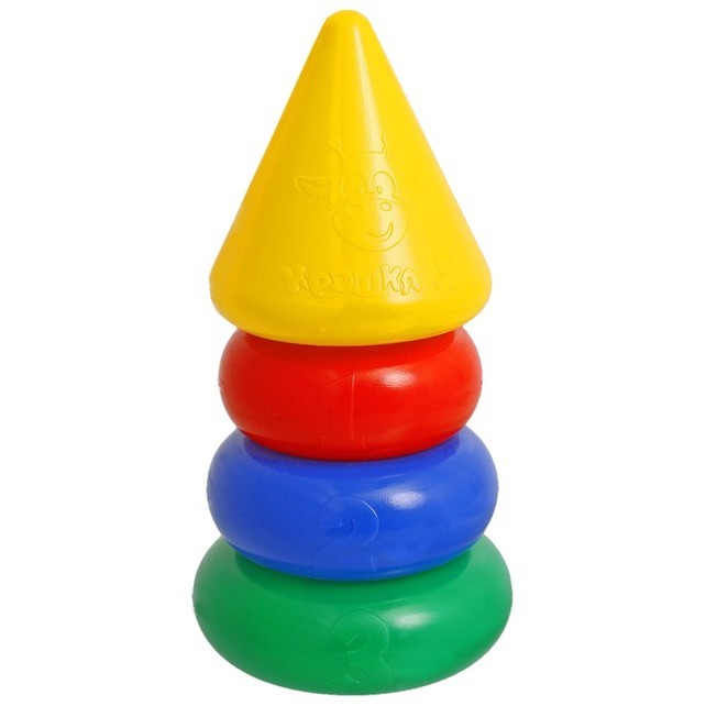 Каждое кольцо разного цвета и пронумеровано. Собирая пирамидку, ребёнок освоит основные цвета радуги и получит базовые навыки счёта. Игры с красочной пирамидкой разовьют у крохи мелкую моторику, координацию движений, воображение, логическое и образное мышление, навыки конструирования. Он научится различать предметы по величине, сравнивать их и делать выводы. Также юный конструктор познакомится с такими понятиями, как «больше», «меньше», «круг», «конус», «плоский», «объёмный».