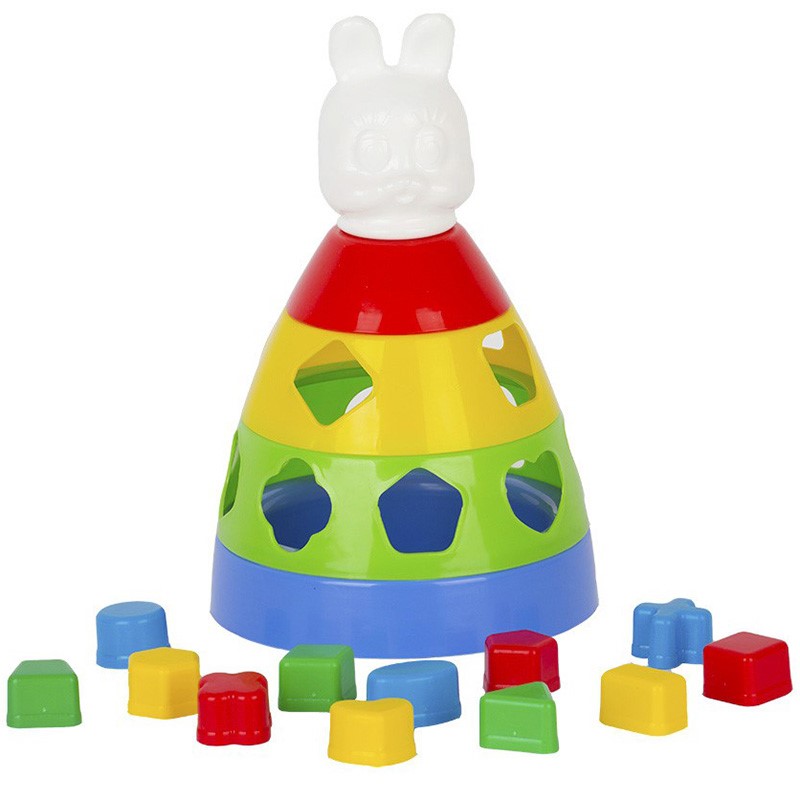 Игра Пирамида с 12 логическими фигурами 27 см. – 4-х ярусная пластмассовая пирамида с наконечником в виде головы зайца. Ширина основания 16 см ,высота 27 см. 2 и 3 ярус имеют отверстия для логических фигур. Данная пирамидка отличается от привычных для нас пирамидок ещё и тем, что ее основание качается, если немного подтолкнуть. Игрушка развивает моторику, координацию, логику воображение. Знакомит ребёнка с цветами, формами.