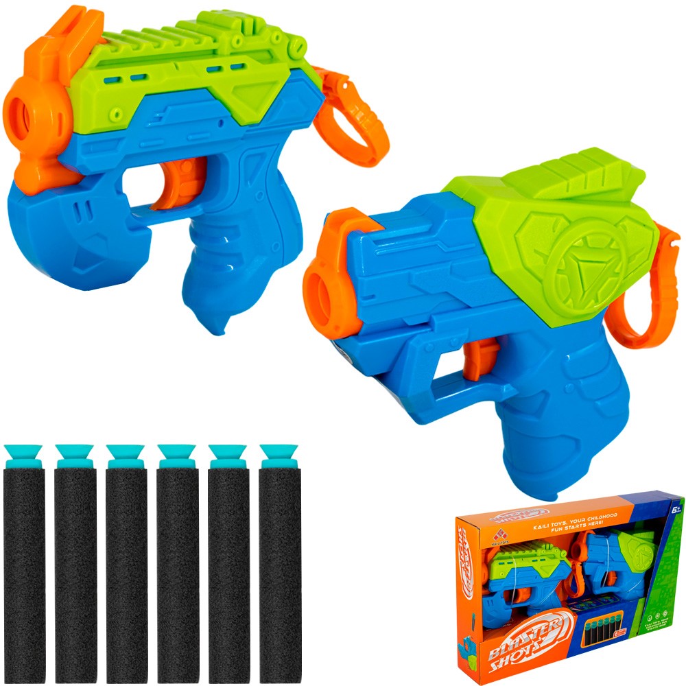 Комплектация: пистолет - 2 шт, мягкие пули - 6 шт