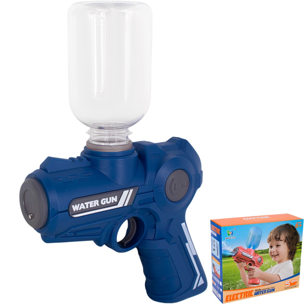 Принцип работы: вода поступает из ёмкости в дуло пистолета, стреляет при нажатии на кнопку.