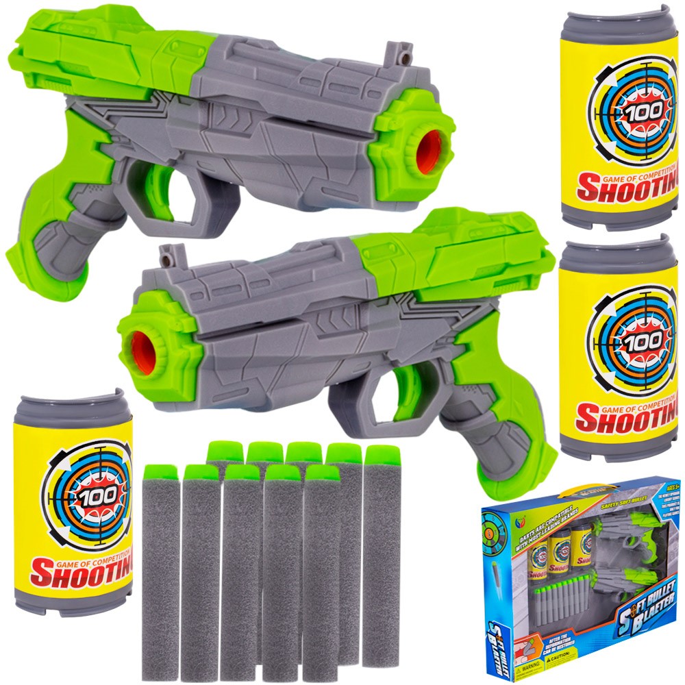Комплектация: пистолет - 2 шт., пуля - 10 шт., банка - 3 шт.