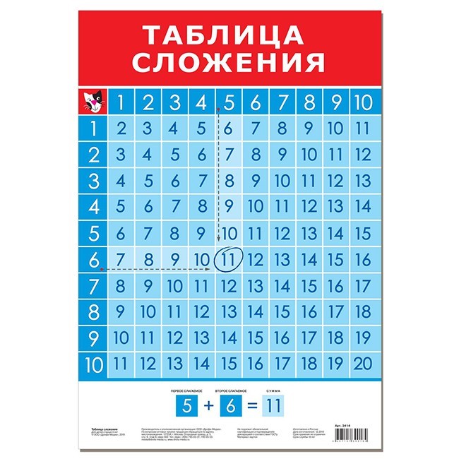 Плакат Таблица сложения 3414