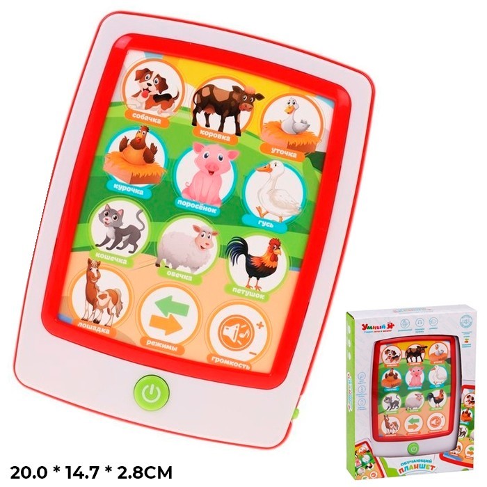 Планшет представляет собой наглядное пособие для детей. Он содержит веселые мелодии, обучающие функции, яркие картинки. Красочное и функциональное изделие содержит кнопки, нажав на которые можно услышать звуки, мелодии, информацию. Планшет наглядно демонстрирует материал. Развивает память и пространственное мышление ребенка, знакомит его с окружающим миром. Он поможет ярко, весело, а главное, наглядно показать информацию.