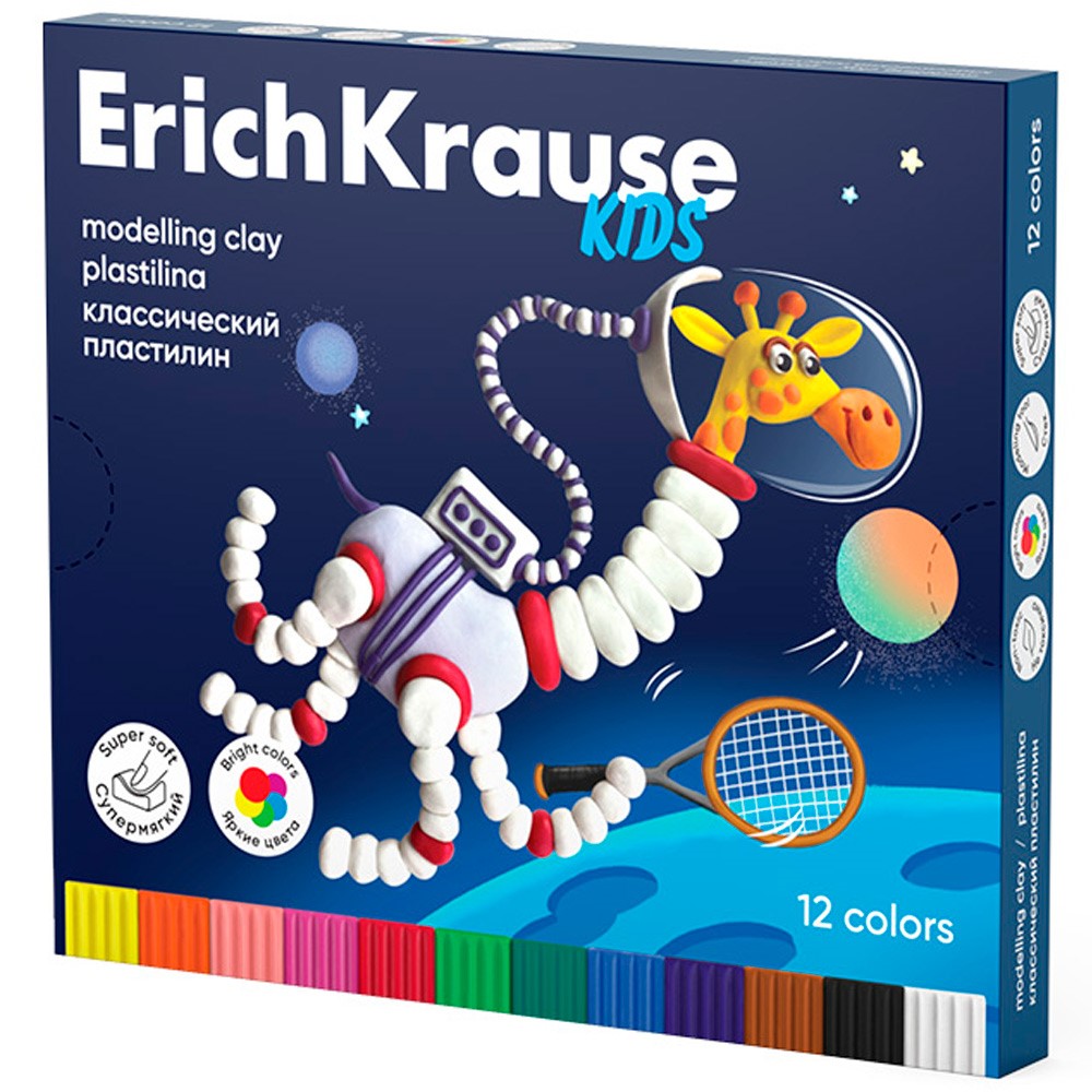 Пластилин 12 цв. Kids Space Animals со стеком, 216 г 61332 /Erich Krause/.