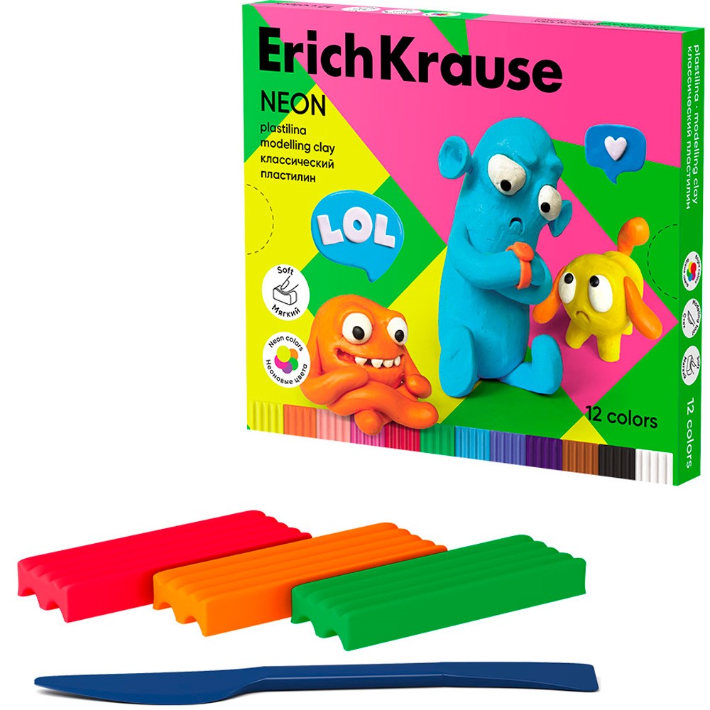 Пластилин 12цв со стеком Jolly Friends Neon 61355 /Erich Krause/.
