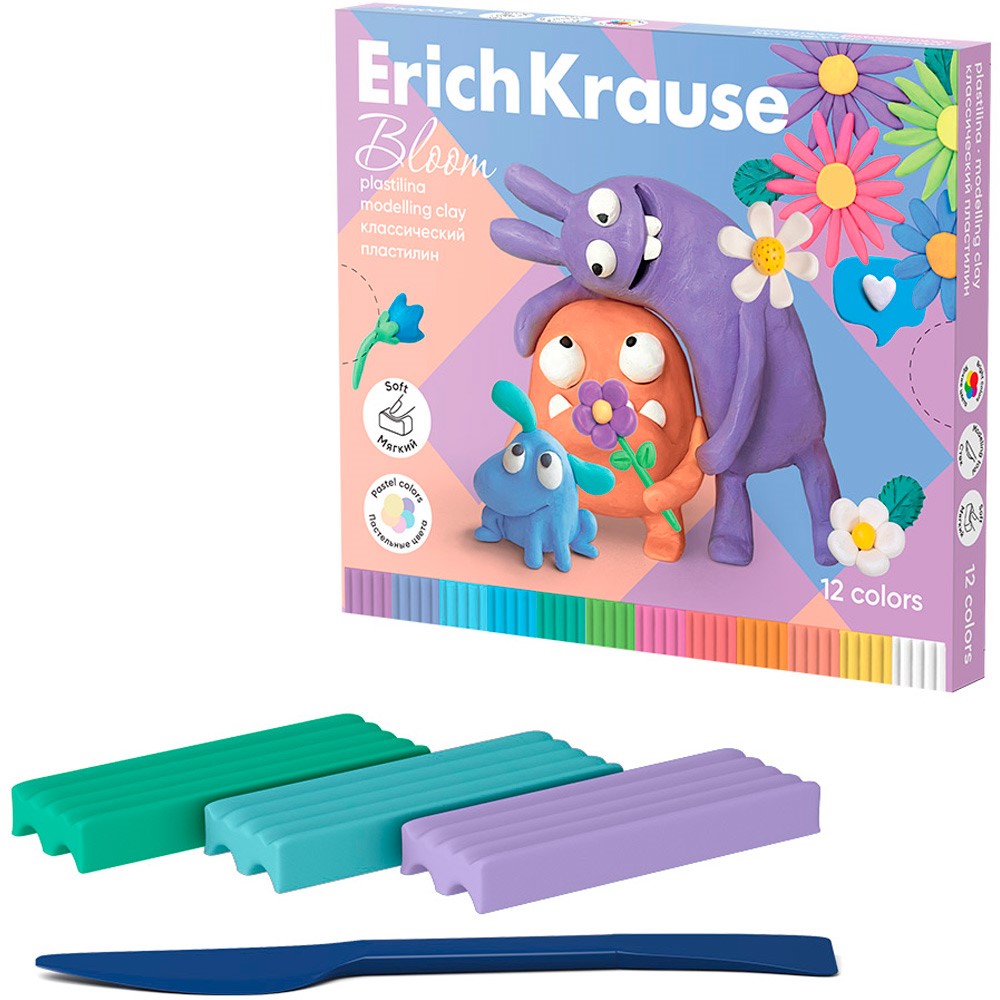 Пластилин 12цв со стеком Jolly Friends Pastel Bloom 61354 /Erich Krause/.