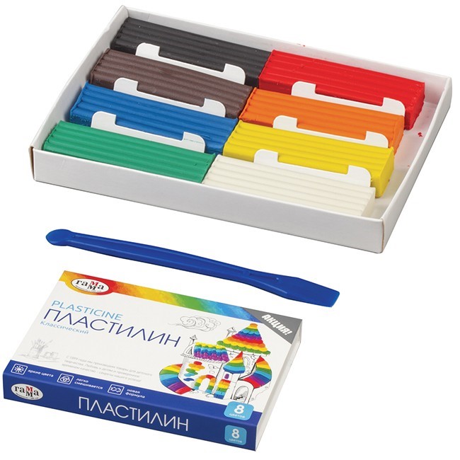 Комплектация: пластилин - 8 цветов, стек