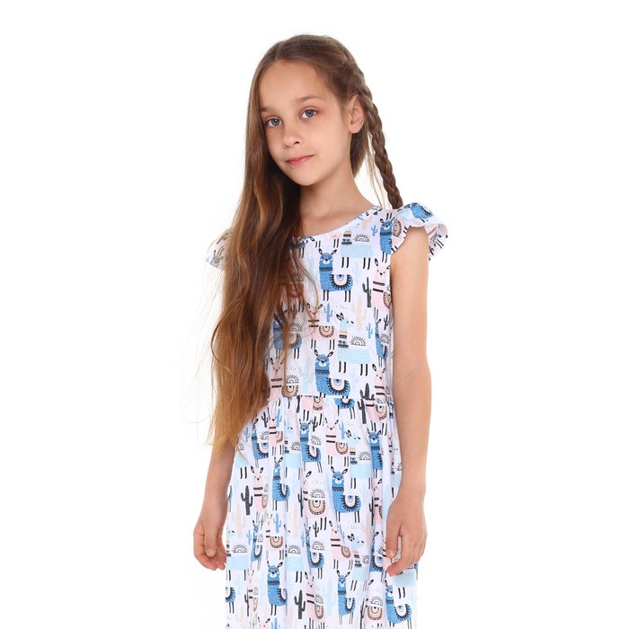 Платье для девочки, цвет белый/лама, рост 104-110 см