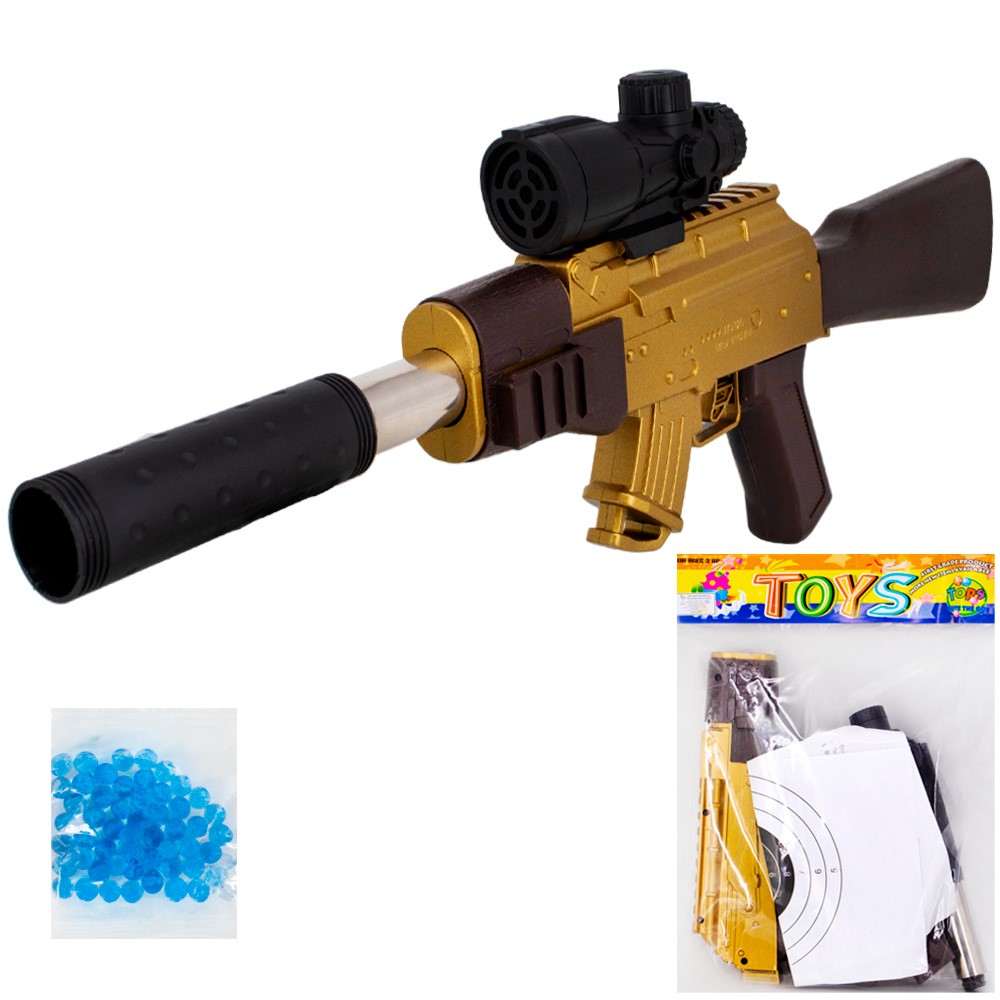 Комплектация: оружие, пули, глушитель, прицел, мишень