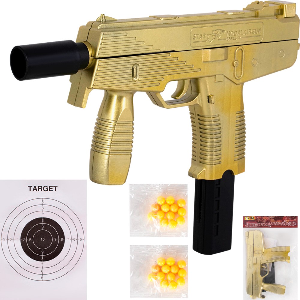 - при нажатии на спусковой крючок стреляет гидрогелевыми пулями-шариками;