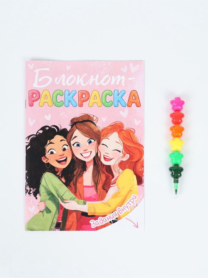 Подарочный набор, блокнот-раскраска А5, 8 страниц, восковой карандаш «Подружки»