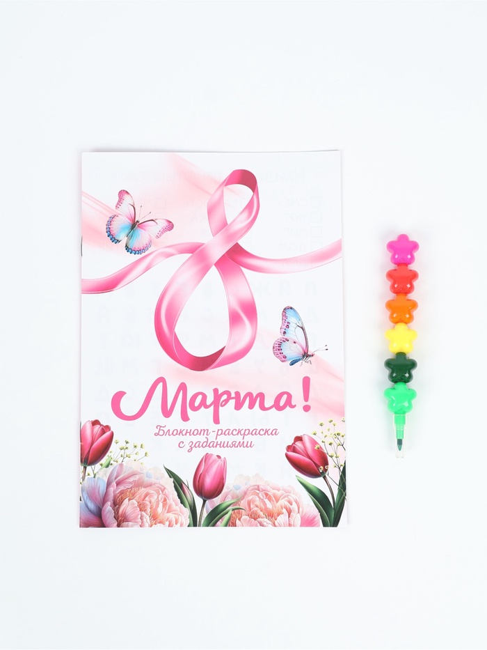Подарочный набор, блокнот-раскраска А5, 8 страниц, восковой карандаш «С 8 марта»