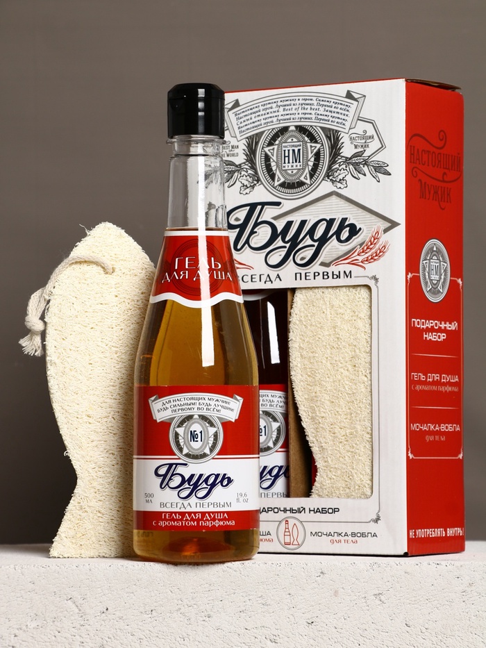 Подарочный набор «Будь», гель для душа во флаконе пиво, 500 мл и мочалка вобла, Чистое счастье