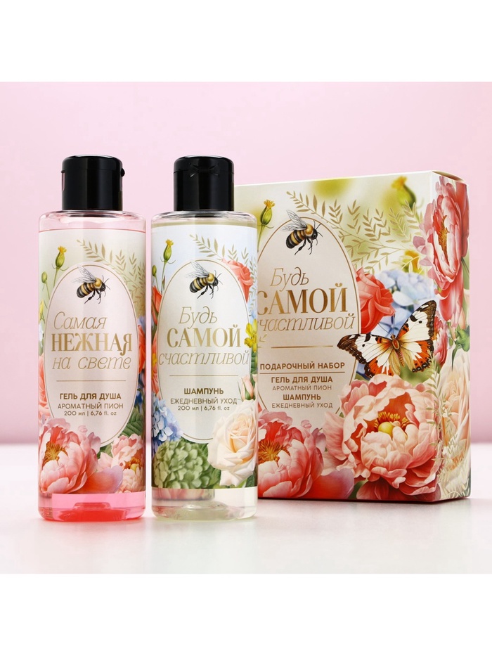 Подарочный набор косметики «Будь самой счастливой!», гель для душа 200 мл и шампунь 200 мл, Чистое счастье