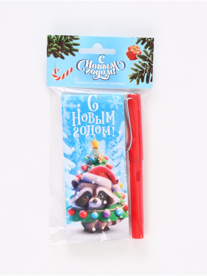 Подарочный набор новогодний «Енотик», блокнот, вечный карандаш, сменные грифели