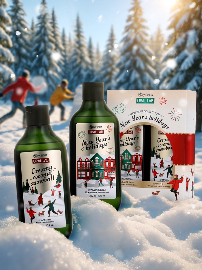 Подарочный набор новогодний New Year holidays: гель для душа и шампунь для волос 2×300 мл, URAL LAB