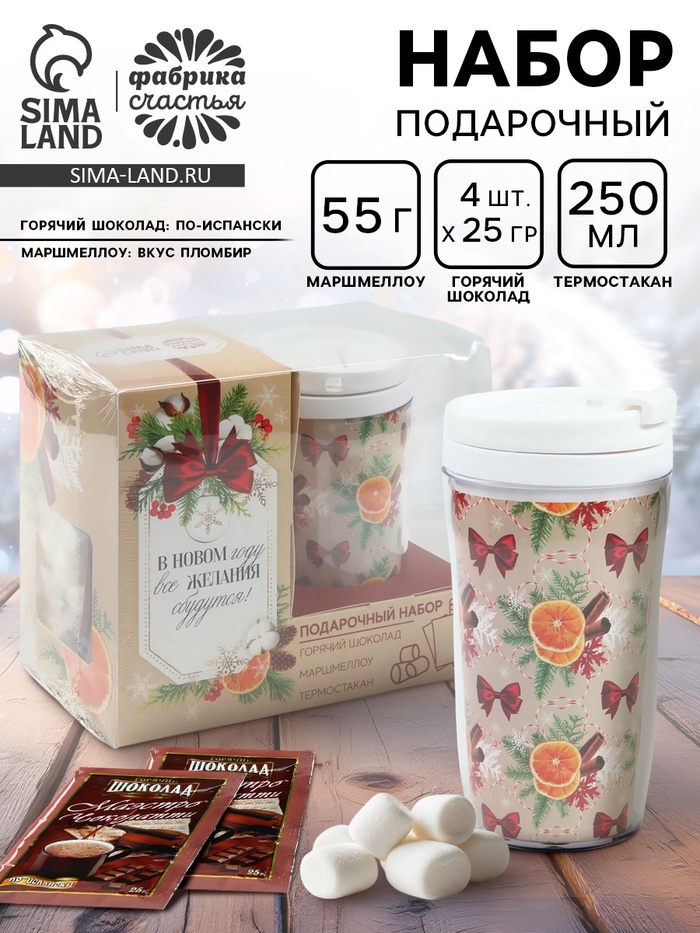 Составляющие набораГорячий шоколад, Маршмеллоу, Термостакан