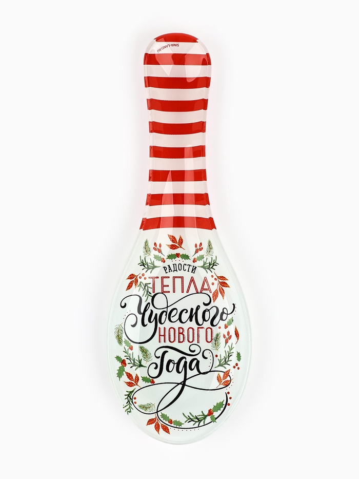 Новогодняя стеклянная подставка под ложку размером 21 х 7,5 х 2 см — отличный выбор для вашей кухни.