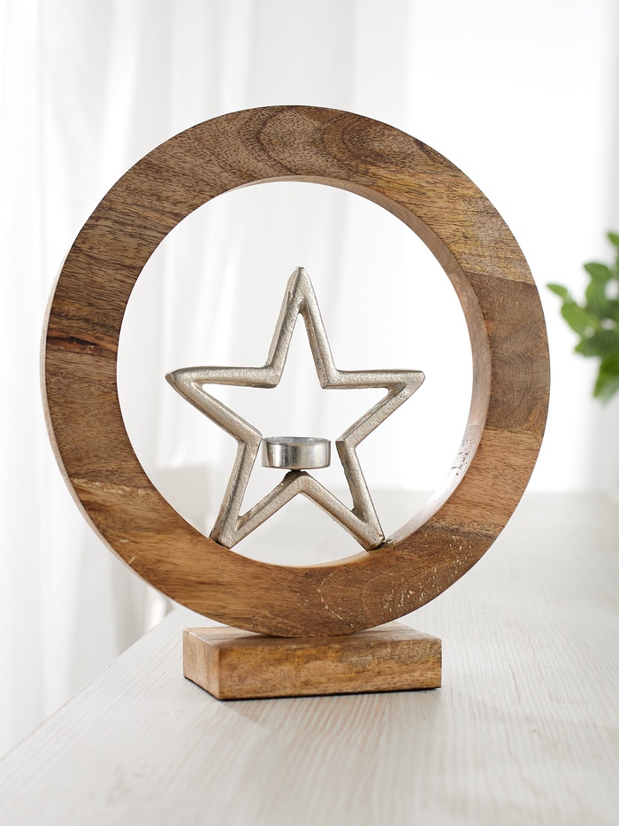 Подсвечник в деревянном кольце «Звезда», 30×8×33 см