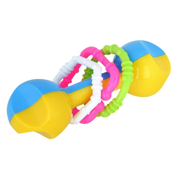 Красочная погремушка Гантелька 01504 - это замечательный подарок для малыша. Погремушка имеет уникальную форму и звук. Погремушка в виде гантельки издает звук от находящихся внутри игрушки элементов и от передвижения колец, нанизанных на основание. Игрушки оказывают огромное влияние на физическое, умственное, эмоциональное развитие маленьких детей, способствуют развитию речи и зрения. Малыш, лежа в кроватке, разглядывает игрушку, концентрирует на ней внимание и проявляет интерес, начинает тянуться за погремушкой и совершает первые движения, учится фокусировать внимание на ярких цветах и начинает различать их. Разноцветная и функциональная игрушка своими яркими цветами привлечет и надолго удержит внимание малыша. Игрушки изготовлены из безопасных и гипоаллергенный прочных, изн